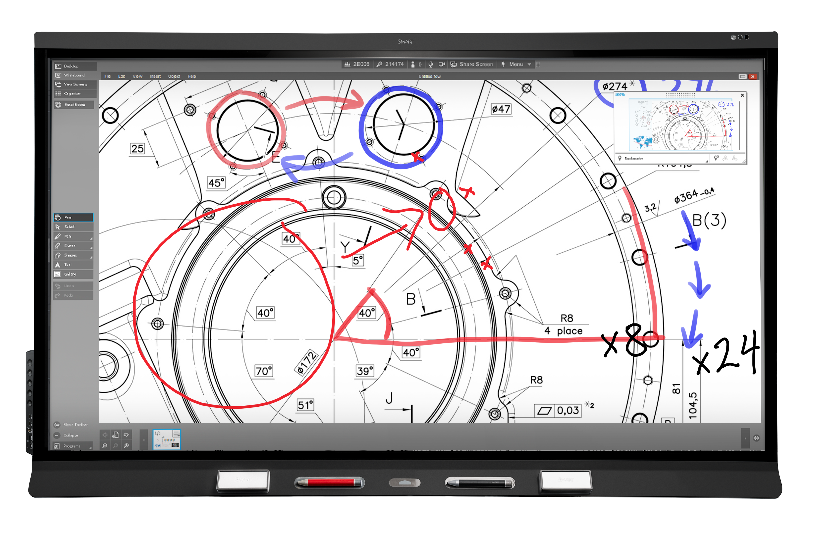 With SMART Meeting Pro, colleagues whiteboard and storyboard in the virtually unlimited interactive workspace. The space expands as you add images, documents, links and notes – even over multiple displays and meetings.