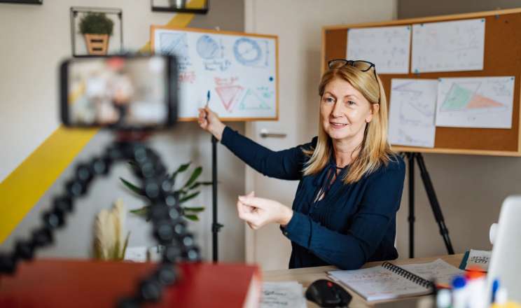 The SMART Podium with battery-free pen integrates with any Windows or Mac OS computer to provide touch, gestures and digital ink in the home office, while video conferencing, or presenting on a connected projector or large-format display.